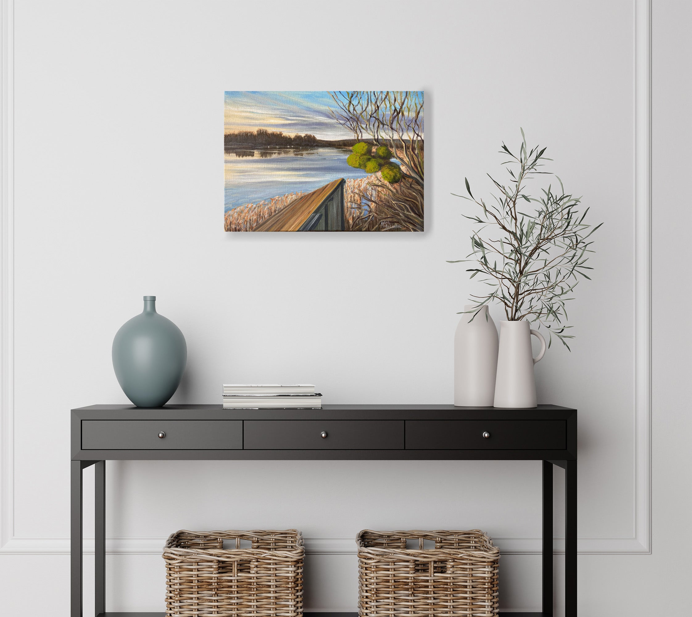 Tirage d’art signé – Horizon doré et ciel lumineux – Peinture à l’huile au pinceau
